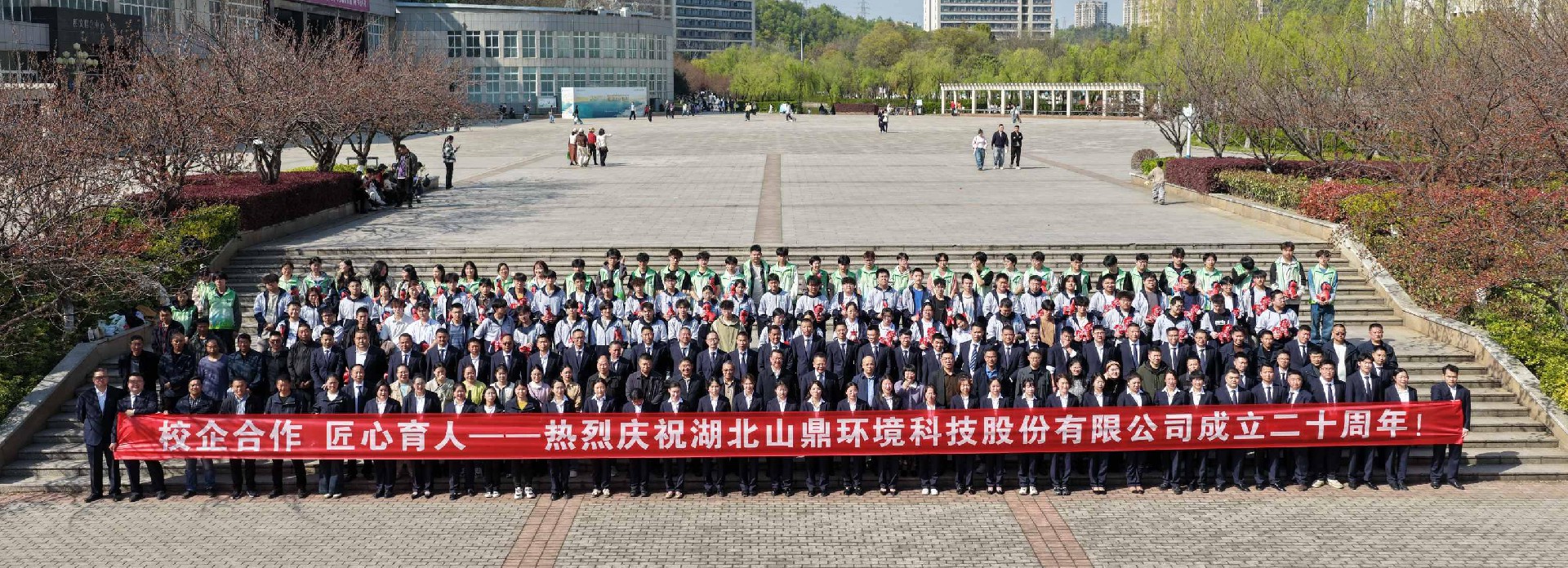 会前,湖工职院校领导、智慧环保产业学院师生与公司参会人员,于学校樱花长廊合影留念。